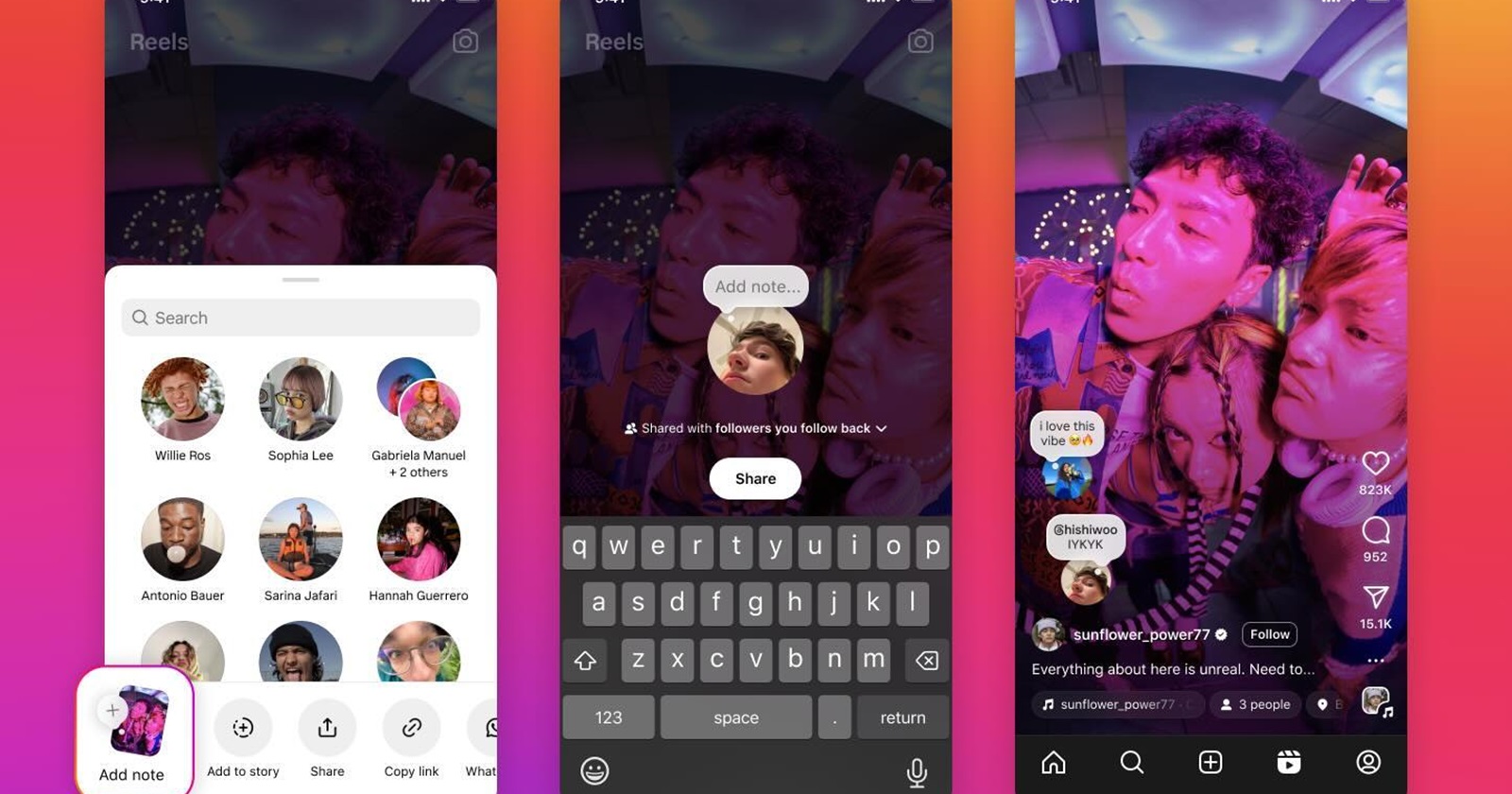Instagram UI when sharing reels now shows random people