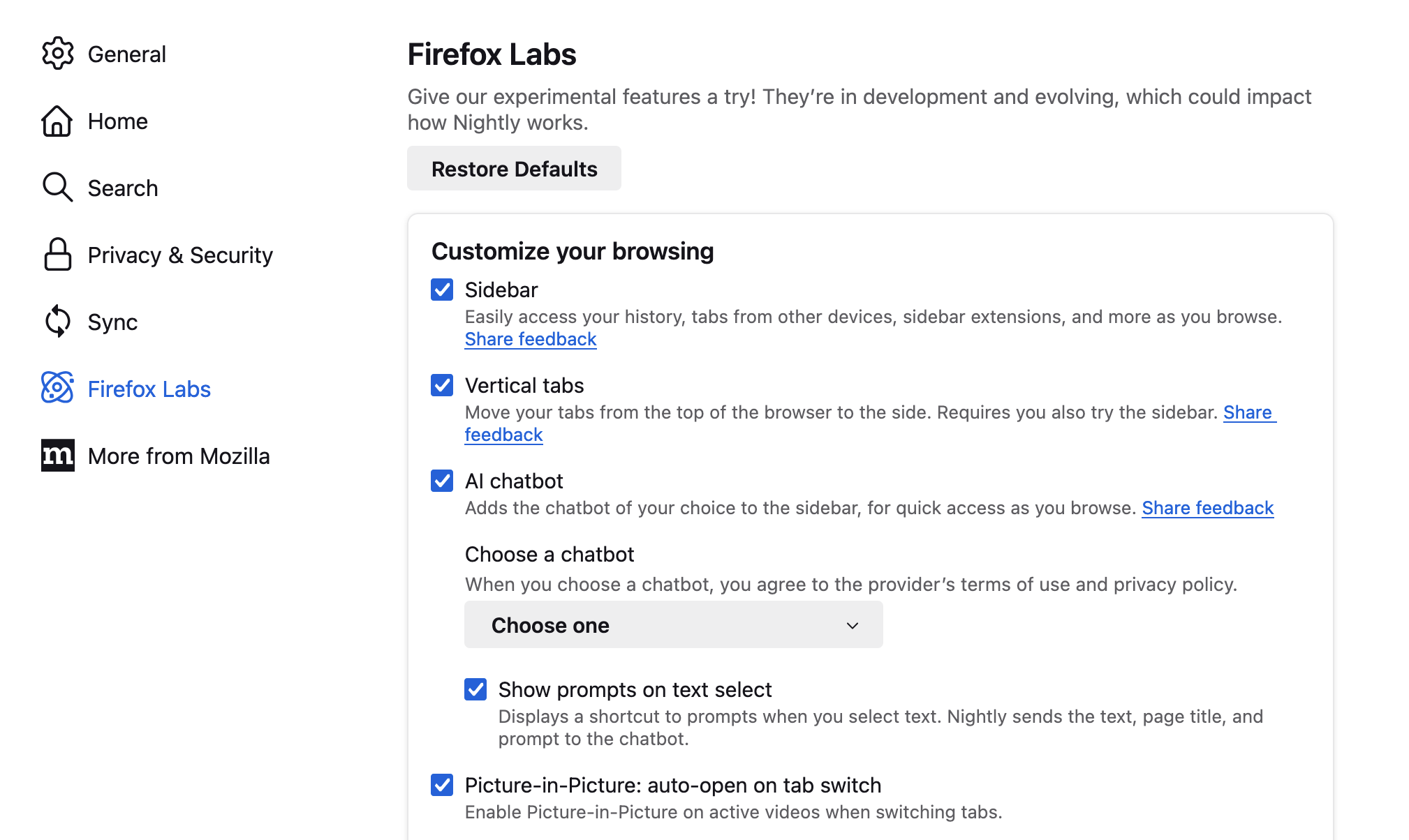 If these updates feel half-baked, Mozilla gets it. They’ve made it easy to opt out of the experiment via about:studies or disable the features in the sidebar settings.