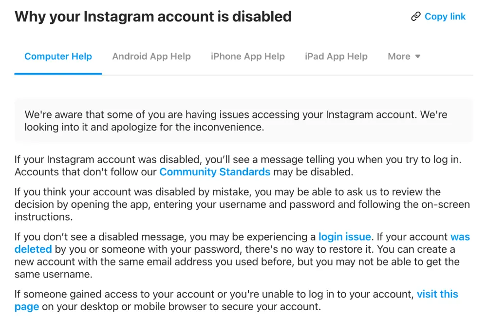 The distinction is vital. If this message has been perpetually present on the help page, it might not indicate any specific action towards rectifying the mass account disablements that have caused so much distress. It could just be a generic response to any user experiencing login troubles. On the other hand, if this message is a recent addition or has been re-emphasized, it could signal that Meta is finally paying more attention to the mass bans issue.