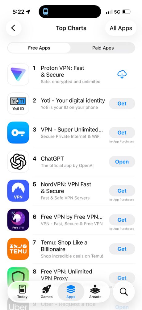 The surge in VPN usage has been so big that app stores now show multiple VPN services dominating the top charts in the UK, with users scrambling to find ways around the new age verification requirements. Check this screenshot shared by user @alice.mosphere.at on Bluesky.