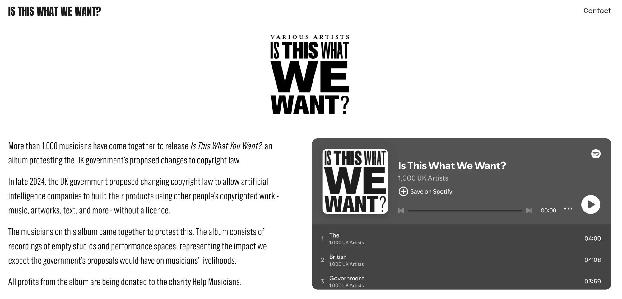 More than a thousand British musicians, from legends like Kate Bush and Damon Albarn to emerging artists, have dropped an album of pure silence. Titled This What We Want?, the project is a stark protest against proposed UK copyright law changes that could let AI companies use songs, lyrics, and recordings to train artificial intelligence without permission. Instead of music, the album features hollow echoes of empty studios, a metaphor for what creators fear AI might leave behind: a void where human artistry once thrived.