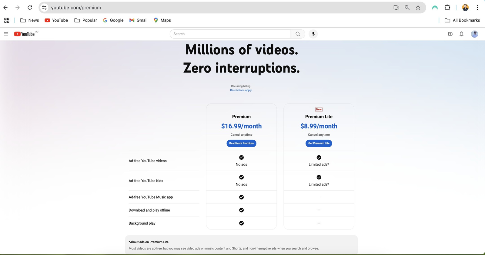 So, would you be willing to trade the full ad-free experience for something a little more “lite”? In markets like Australia, Premium Lite is about half the cost of the full version. That’s a tempting offer for those of us who just want to watch a few cat videos without burning a hole in our pockets.